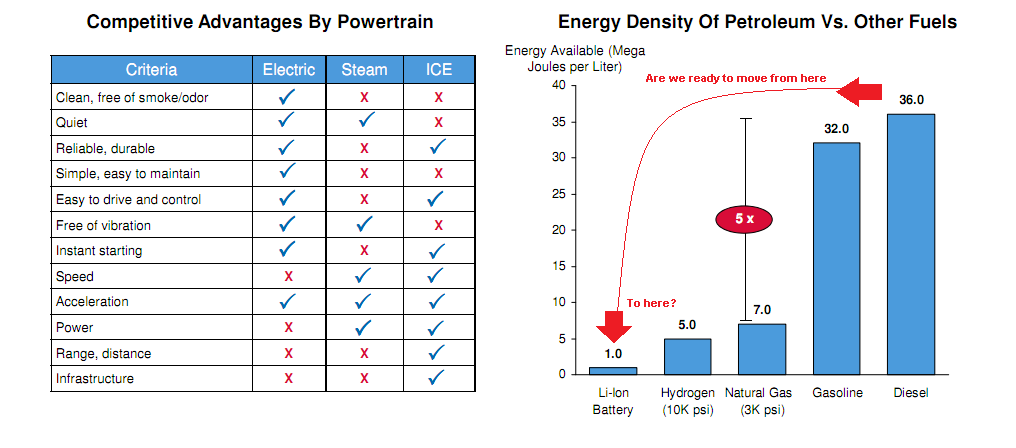 look at the energy density of petroleum with other sources of fuel.